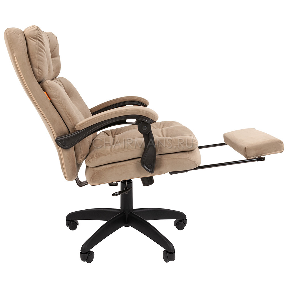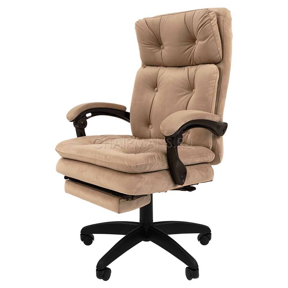 CHAIRMAN HOME 442 просто создано для домашнего офиса. Особенности: Обивка из велюра с тафтинговыми деталями. Солидные размеры сиденья и спинки. Многослойный наполнитель для максимального комфорта Синхромеханизм качания с отклонением сидения и спинки в пропорции 1:3. Выдвижная подставка для ног. Бесшумные ролики с PU-покрытием не царапают пол.