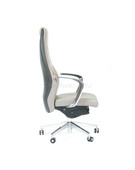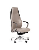 Кресло - фантазия. Кресло - мечта. Такое же легкое, воздушное, устремленное ввысь. Выгодно подчеркивает высокий статус и хороший вкус своего владельца элегантной формой, хромированными деталями и обивкой из натуральной кожи. Особенности: Высокая изогнутая спинка и слегка наклоненное в ее сторону сиденье позволяют комфортно разместиться в кресле. Хромированные металлические подлокотники дополнены накладными пластиковыми пластинами. Они позволяют удобно фиксировать руки во время работы. При помощи специальных механизмов можно задавать сиденью нужную высоту, устанавливать спинку в горизонтальном положении, а также синхронно отклонять корпус кресла и надежно фиксировать его в нескольких положениях. Обивка корпуса выполнена из высококачественной кожи. Прогрессивный дизайн модели сможет освежить любой интерьер офиса или дома. Вся конструкция держится на металлической крестовине, оборудованной нейлоновыми роликами, которые способны перемещать вес в 120 кг по любой поверхности.