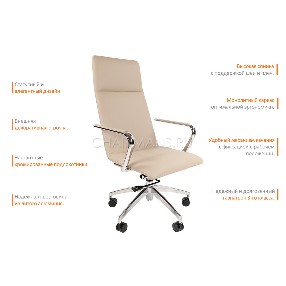 Тренд на минимализм набирает обороты. Особая атмосфера, где строгость форм встречается с непревзойдённым комфортом, где каждый элемент продуман и выверен до мелочей. Представляем Вам продуманное превосходство стильного и статусного кресла руководителя. Визуальная лёгкость и отсутствие лишнего декора освобождает пространство и делает офисное кресло центральным арт-объектом делового интерьера. CHAIRMAN 980 -авторский дизайн для тех, кто ценит качество! Особенности: Статусный и элегантный дизайн. Внешняя декоративная строчка. Элегантные хромированные подлокотники. Надежнаякрестовина из литого алюминия. Высокая спинка споддержкой шеи и плеч. Монолитный каркасоптимальной эргономики. Удобный механизм качания с фиксацией в рабочем положении. Надежный и долговечный газпатрон 3-го класса.