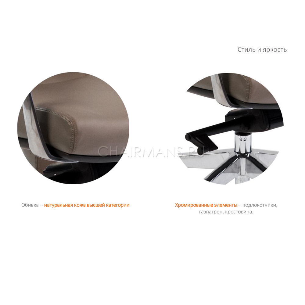 Что мы представляем, когда слышим слово «Дизайнерское»? «Дизайнерская одежда», «Дизайнерский интерьер»? Скорее всего, что-то дорогое, эксклюзивное, но при этом – далеко не всегда функциональное. Позвольте представить – CHAIRMAN 920. Кресло, объединившее настоящий дизайнерский облик с комфортом и надежностью хорошего, качественного продукта, подходящего большинству пользователей. И все это – в натуральной коже, и по очень, очень разумной цене. Особенности: Обивка – натуральная кожа высшей категории. Хромированные элементы – подлокотники, газпатрон, крестовина. Механизм качания – повышенной комфортности с фиксацией в любом положении. Подлокотники с мягкими накладкамииз натуральной кожи.