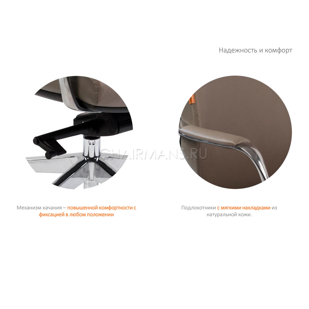Что мы представляем, когда слышим слово «Дизайнерское»? «Дизайнерская одежда», «Дизайнерский интерьер»? Скорее всего, что-то дорогое, эксклюзивное, но при этом – далеко не всегда функциональное. Позвольте представить – CHAIRMAN 920. Кресло, объединившее настоящий дизайнерский облик с комфортом и надежностью хорошего, качественного продукта, подходящего большинству пользователей. И все это – в натуральной коже, и по очень, очень разумной цене. Особенности: Обивка – натуральная кожа высшей категории. Хромированные элементы – подлокотники, газпатрон, крестовина. Механизм качания – повышенной комфортности с фиксацией в любом положении. Подлокотники с мягкими накладкамииз натуральной кожи.