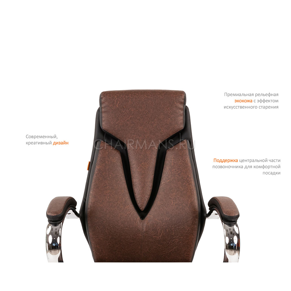Нас часто заставляют выбирать красота или удобство. Но что, если мы хотим всё сразу? CHAIRMAN 901 кресло, в котором дизайн создаёт эргономику. Взгляд приковывает спинка она скомбинирована из рельефных элементов, обтянутых премиальной экокожей с эффектом искусственного старения (их очень приятно касаться!). И это не просто дизайнерское решение это эффективная поддержка спины , позволяющая по настоящему расслабиться и ощутить комфорт во время решения деловых задач. Удобное и надёжное, кресло в то же время остаётся лёгким, элегантным, а главное, доступным решением Выбирайте и красоту, и комфорт по очень вкусной цене. Особенность: Современный, креативный дизайн. Премиальная рельефная экокожа с эффектом искусственного старения. Поддержка центральной части позвоночника для комфортной посадки. Стильные металлические хромированные элементы. Надёжный механизм качания с возможностью фиксации в рабочем положении. Газлифт 3 класса, рассчитанный на 120 тыс. циклов подъема сжатия. Мягкие ролики с PU накладкой.