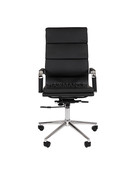 Кресло в стиле HI-TECH. Яркий, оригинальный, узнаваемый дизайн - "плитки" на спинке, тонкое сиденье, хромированный каркас и подлокотники с обивкой. Кресло для тех, кто не боится выделяться. Особенности: Эргономичности спинке придают горизонтальные мягкие подушки, которые служат для равномерной нагрузки на позвоночник. Модель с укороченной спинкой отличается своей компактностью. В модели применен механизм качания с возможностью фиксации в рабочем положении. Обивка кресла - экокожа, которая своими характеристиками не уступает натуральной коже. Прочное основание кресла - крестовина, изготовлена из хромированного металла, и оснащена универсальными колесиками из полимера. В целях практичности накладки разделены на подлокотниках в месте сгиба, что предотвращает от повреждений в местах наибольшей нагрузки.