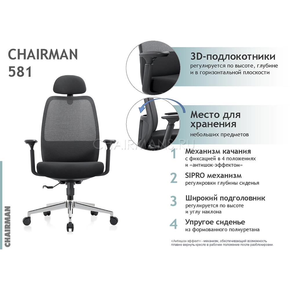 Купить Кресло руководителя Chairman 581 сетка/ткань черный в интернет-магазине etalon-samara.ru с доставкой. Кресло руководителя Chairman 581 сетка/ткань черный, артикул 581: читать описание, характеристики, фото