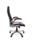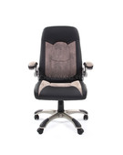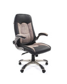 Особенности: Высокая спинка – удобная и мягкая, а глубокое сиденье с уплотнениями по периметру способствуют более комфортной посадке. Дополнительное удобство кресла – подлокотники: при необходимости их можно откидывать назад. Корпус оборудован механизмом качания с фиксацией в удобном положении. Комбинированная обивка подчеркивает необычный дизайн конструкции. Она оригинально сшита из экокожи премиум-класса в сочетании с микрофиброй, которая напоминает замшу. Прочная, металлическая крестовина, максимальная нагрузка 120 кг.