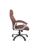 Эффектное, основательное кресло руководителя, по форме напоминающее водительское кресло в автомобиле премиум-класса. Столь же мощная поддержка статуса, и столь же высокий уровень комфорта. Особенности: Спинка этой модели идеально поддерживает все отделы позвоночника. Боковая поддержка гарантирует фиксацию позвоночника в правильном положении. Поясничную поддержку обеспечивает подушка в нижней части корпуса. Дугообразные подлокотники дополняют мягкие подлокотники, которые являются хорошей поддержкой для рук. Достаточно опустить руку и, повернув лапку, отрегулировать высоту посадки. Если слегка потянуть ее в сторону, можно привести в работу механизм качания. Амплитуда наклона корпуса корректируется индивидуально. Для этого нужно отжать или зажать пружину под сиденьем специальным винтом, который есть в креслах премиум-класса. Внушительный и брутальный облик модели поможет привнести правильную атмосферу в кабинет руководителя. Прочная, металлическая крестовина с пластиковыми накладками.