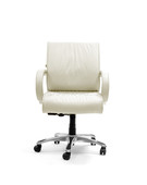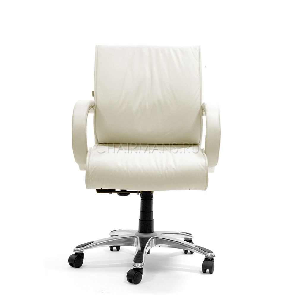 Яркое, эффектное кресло руководителя с невысокой спинкой. По форме чем-то напоминает парус, устремленный вперед и вверх. Но при этом - весьма солидный облик, дополненный обивкой из натуральной кожи. Особенности: Корпус имеет достаточно широкое и глубокое место. Благодаря скошенному переднему краю сиденья кровеносные сосуды на ногах не пережимаются. Низкая спинка кресла достаточно выгнута, а потому сможет поддерживать в удобном положении поясничный отдел позвоночника. Модель оборудована механизмами, которые фиксируют наклон корпуса и высоту конструкции. Обивка кресла сшита из прочной кожи. Подлокотники по всей длине задекорированы мягкими подушечками, что дает возможность удобно размещать руки. Крестовина и дуги подлокотников изготовлены из хромированного металла. Пятилучевая ножка со специальными пластиковыми накладками.