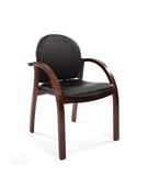 Посетительское кресло на стыке классики и модерна. Натуральное дерево и плавные, обтекаемые, лаконичные формы. Компактное, но эффектное и стильное кресло. Особенности: Эргономичная мягкая спинка и сиденье. Компактные размеры делают его незаменимым участником переговорных и залов ожидания. Деревянный каркас и обивка из эко-кожи создают элегантную композицию, которая найдет свое место в любом интерьере. Прочный деревянный каркас.