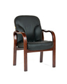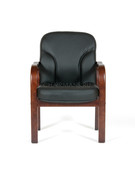 Классическое кресло для посетителей. Натуральное дерево, натуральная кожа… максимум солидности, и при этом - весьма компактная лаконичная форма. Особенности: Широкие спинка и сиденье. Обивка кресла — натуральная кожа COW. Это мягкая кожа с минимально обработанным верхним слоем, благодаря чему она "дышит", приспосабливается к любым температурным изменениям, не нарушает теплообмен между человеческим телом и окружающей средой. Это солидное кресло из благородных материалов станет хорошим дополнением к руководительскому кожаному креслу в переговорной группе, а так же может украсить интерьер приемной или конференц - зала. Натуральные, благородные материалы, используемые при изготовлении кресла придают ему аристократичный вид. Монолитный прочный каркас.