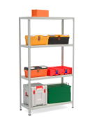 • Металлический полочный усиленный стеллаж модели СТФ, сборно-разборного типа, предназначен для хранения малогабаритных грузов, архивной документации, оргтехники, различных товаров и продукции в помещениях офисов, архивов, библиотек и складов. Возможно бытовое использование металлического стеллажа СТФ для хранения различного инвентаря, инструментов и домашней утвари в гаражах, на балконах и даче. • Способ крепления полок к стойкам – болтовое соединение, при помощи болтов, шайб и гаек. • Шаг регулировки горизонтальных полок по высоте составляет 25 мм. • Максимальная равномерно распределенная нагрузка на каждую полку длиной 700 мм составляет 150 кг; длиной от 1000 до 1200 мм не должна превышать 125 кг, при длине полки свыше 1200 мм максимальная равномерно распределенная нагрузка на каждую полку не более 100 кг. • В собранном виде, металлический полочный стеллаж СТФ представляет собой абсолютно жесткую, прочную и устойчивую конструкцию, безопасную для эксплуатации потребителем. • ДДля обеспечения жесткости конструкции стеллажа, нижняя горизонтальная полка устанавливается на расстоянии не более 150 мм от пола. Вторая снизу полка крепится по 4 углам к стойкам через металлические уголки жесткости. Для стеллажей высотой до 2 м, верхние уголки жесткости крепятся к 4 углам верхней полки. На стеллажах, высотой от 2 м до 2,5 м включительно, верхние уголки жёсткости необходимо крепить на высоте предпоследнего яруса полок, но не ниже 3/4 высоты. • Для сохранности напольного покрытия, каждая стойка стеллажа СТФ комплектуется съемным пластиковым подпятником. • Конструктив металлического полочного стеллажа СТФ позволяет собирать, как отдельно стоящий стеллаж, так и многосекционный стеллаж, состоящий из основной секции и неограниченного числа дополнительных секций. • Стойки металлического стеллажа СТФ представляет собой сложный, фигурный холодно-катанный профиль «Г»-образной формы. • Дополнительную жесткость, увеличение нагрузочных характеристик, а так же травмобезопасность эксплуатации металлической стойки СТФ обеспечивают завальцованные продольные края. • Стойки и полки окрашены полимерной (порошковой) краской RAL 7035 светло-серого цвета.