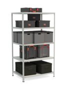 • Металлический полочный усиленный стеллаж модели СТФ, сборно-разборного типа, предназначен для хранения малогабаритных грузов, архивной документации, оргтехники, различных товаров и продукции в помещениях офисов, архивов, библиотек и складов. Возможно бытовое использование металлического стеллажа СТФ для хранения различного инвентаря, инструментов и домашней утвари в гаражах, на балконах и даче. • Способ крепления полок к стойкам – болтовое соединение, при помощи болтов, шайб и гаек. • Шаг регулировки горизонтальных полок по высоте составляет 25 мм. • Максимальная равномерно распределенная нагрузка на каждую полку длиной 700 мм составляет 150 кг; длиной от 1000 до 1200 мм не должна превышать 125 кг, при длине полки свыше 1200 мм максимальная равномерно распределенная нагрузка на каждую полку не более 100 кг. • В собранном виде, металлический полочный стеллаж СТФ представляет собой абсолютно жесткую, прочную и устойчивую конструкцию, безопасную для эксплуатации потребителем. • Для обеспечения жесткости конструкции стеллажа, нижняя горизонтальная полка устанавливается на расстоянии не более 150 мм от пола. Вторая снизу полка крепится по 4 углам к стойкам через металлические уголки жесткости. Для стеллажей высотой до 2 м, верхние уголки жесткости крепятся к 4 углам верхней полки. На стеллажах, высотой от 2 м до 2,5 м включительно, верхние уголки жёсткости необходимо крепить на высоте предпоследнего яруса полок, но не ниже 3/4 высоты. • Для сохранности напольного покрытия, каждая стойка стеллажа СТФ комплектуется съемным пластиковым подпятником. • Конструктив металлического полочного стеллажа СТФ позволяет собирать, как отдельно стоящий стеллаж, так и многосекционный стеллаж, состоящий из основной секции и неограниченного числа дополнительных секций. • Стойки металлического стеллажа СТФ представляет собой сложный, фигурный холодно-катанный профиль «Г»-образной формы. • Дополнительную жесткость, увеличение нагрузочных характеристик, а так же травмобезопасность эксплуатации металлической стойки СТФ обеспечивают завальцованные продольные края.