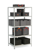 • Металлический полочный усиленный стеллаж модели СТФ, сборно-разборного типа, предназначен для хранения малогабаритных грузов, архивной документации, оргтехники, различных товаров и продукции в помещениях офисов, архивов, библиотек и складов. Возможно бытовое использование металлического стеллажа СТФ для хранения различного инвентаря, инструментов и домашней утвари в гаражах, на балконах и даче. • Способ крепления полок к стойкам – болтовое соединение, при помощи болтов, шайб и гаек. • Шаг регулировки горизонтальных полок по высоте составляет 25 мм. • Максимальная равномерно распределенная нагрузка на каждую полку длиной 700 мм составляет 150 кг; длиной от 1000 до 1200 мм не должна превышать 125 кг, при длине полки свыше 1200 мм максимальная равномерно распределенная нагрузка на каждую полку не более 100 кг. • В собранном виде, металлический полочный стеллаж СТФ представляет собой абсолютно жесткую, прочную и устойчивую конструкцию, безопасную для эксплуатации потребителем. • Для обеспечения жесткости конструкции стеллажа, нижняя горизонтальная полка устанавливается на расстоянии не более 150 мм от пола. Вторая снизу полка крепится по 4 углам к стойкам через металлические уголки жесткости. Для стеллажей высотой до 2 м, верхние уголки жесткости крепятся к 4 углам верхней полки. На стеллажах, высотой от 2 м до 2,5 м включительно, верхние уголки жёсткости необходимо крепить на высоте предпоследнего яруса полок, но не ниже 3/4 высоты. • Для сохранности напольного покрытия, каждая стойка стеллажа СТФ комплектуется съемным пластиковым подпятником. • Конструктив металлического полочного стеллажа СТФ позволяет собирать, как отдельно стоящий стеллаж, так и многосекционный стеллаж, состоящий из основной секции и неограниченного числа дополнительных секций. • Стойки металлического стеллажа СТФ представляет собой сложный, фигурный холодно-катанный профиль «Г»-образной формы. • Дополнительную жесткость, увеличение нагрузочных характеристик, а так же травмобезопасность эксплуатации металлической стойки СТФ обеспечивают завальцованные продольные края.