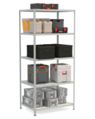 • Металлический полочный усиленный стеллаж модели СТФ, сборно-разборного типа, предназначен для хранения малогабаритных грузов, архивной документации, оргтехники, различных товаров и продукции в помещениях офисов, архивов, библиотек и складов. Возможно бытовое использование металлического стеллажа СТФ для хранения различного инвентаря, инструментов и домашней утвари в гаражах, на балконах и даче. • Способ крепления полок к стойкам – болтовое соединение, при помощи болтов, шайб и гаек. • Шаг регулировки горизонтальных полок по высоте составляет 25 мм. • Максимальная равномерно распределенная нагрузка на каждую полку длиной 700 мм составляет 150 кг; длиной от 1000 до 1200 мм не должна превышать 125 кг, при длине полки свыше 1200 мм максимальная равномерно распределенная нагрузка на каждую полку не более 100 кг. • В собранном виде, металлический полочный стеллаж СТФ представляет собой абсолютно жесткую, прочную и устойчивую конструкцию, безопасную для эксплуатации потребителем. • Для обеспечения жесткости конструкции стеллажа, нижняя горизонтальная полка устанавливается на расстоянии не более 150 мм от пола. Вторая снизу полка крепится по 4 углам к стойкам через металлические уголки жесткости. Для стеллажей высотой до 2 м, верхние уголки жесткости крепятся к 4 углам верхней полки. На стеллажах, высотой от 2 м до 2,5 м включительно, верхние уголки жёсткости необходимо крепить на высоте предпоследнего яруса полок, но не ниже 3/4 высоты. • Для сохранности напольного покрытия, каждая стойка стеллажа СТФ комплектуется съемным пластиковым подпятником. • Конструктив металлического полочного стеллажа СТФ позволяет собирать, как отдельно стоящий стеллаж, так и многосекционный стеллаж, состоящий из основной секции и неограниченного числа дополнительных секций. • Стойки металлического стеллажа СТФ представляет собой сложный, фигурный холодно-катанный профиль «Г»-образной формы. • Дополнительную жесткость, увеличение нагрузочных характеристик, а так же травмобезопасность эксплуатации металлической стойки СТФ обеспечивают завальцованные продольные края.