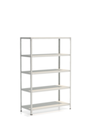 • Металлический полочный усиленный стеллаж модели СТФ, сборно-разборного типа, предназначен для хранения малогабаритных грузов, архивной документации, оргтехники, различных товаров и продукции в помещениях офисов, архивов, библиотек и складов. Возможно бытовое использование металлического стеллажа СТФ для хранения различного инвентаря, инструментов и домашней утвари в гаражах, на балконах и даче. • Способ крепления полок к стойкам – болтовое соединение, при помощи болтов, шайб и гаек. • Шаг регулировки горизонтальных полок по высоте составляет 25 мм. • Максимальная равномерно распределенная нагрузка на каждую полку длиной 700 мм составляет 150 кг; длиной от 1000 до 1200 мм не должна превышать 125-145 кг, при длине полки свыше 1200 мм максимальная равномерно распределенная нагрузка на каждую полку не более 100 кг. • В собранном виде, металлический полочный стеллаж СТФ представляет собой абсолютно жесткую, прочную и устойчивую конструкцию, безопасную для эксплуатации потребителем. • Для обеспечения жесткости конструкции стеллажа, нижняя горизонтальная полка устанавливается на расстоянии не более 150 мм от пола. Вторая снизу полка крепится по 4 углам к стойкам через металлические уголки жесткости. Для стеллажей высотой до 2 м, верхние уголки жесткости крепятся к 4 углам верхней полки. На стеллажах, высотой от 2 м до 2,5 м включительно, верхние уголки жёсткости необходимо крепить на высоте предпоследнего яруса полок, но не ниже 3/4 высоты. • Для сохранности напольного покрытия, каждая стойка стеллажа СТФ комплектуется съемным пластиковым подпятником. • Конструктив металлического полочного стеллажа СТФ позволяет собирать, как отдельно стоящий стеллаж, так и многосекционный стеллаж, состоящий из основной секции и неограниченного числа дополнительных секций. • Стойки металлического стеллажа СТФ представляет собой сложный, фигурный холодно-катанный профиль «Г»-образной формы. • Дополнительную жесткость, увеличение нагрузочных характеристик, а так же травмобезопасность эксплуатации металлической стойки СТФ обеспечивают завальцованные продольные края. • Стойки и полки окрашены полимерной (порошковой) краской RAL 7035 светло-серого цвета.