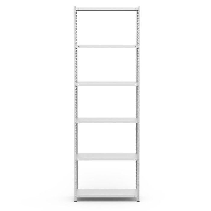Стеллажи сборно-разборные серии СТФУ-П предназначены для хранения разнообразной продукции в офисах, торговых залах, бытовках, камерах хранения, гаражах, складских площадях, архивах. Грузоподъемность односекционного стеллажа СТФУ-П высотой 3м составляет 750кг, а многосекционного стеллажа – до 1000 кг. При этом на верхнюю полку равномерно распределнная нагрузка (как в односекционном, так и многосекционном стеллажах) не должна превышать 60 кг. Нижняя полка стеллажа должна размещаться не выше 150 мм от пола. В основном стеллажи продаются поэлементно. Данная базовая модель - стеллаж СТФУ-П 1056-3.0 комплектуется 4 оцинкованными стойками h3000 мм, 6 полками 1000*500 мм, четырьмя подпятниками, 96 комплектами крепежа, 24 уголками жесткости. Стойки стеллажа изготовлены из профиля "равносторонний угол", шаг перфорации равен 25 мм (диаметр перфорации 7 мм). Полки усилены ребром жесткости. Стойки и полки окрашены полимерной (порошковой) краской RAL 7035 светло-серого цвета. Стеллаж поставляется в разобранном виде, упакованный в стрейч пленку и гофрокартон.