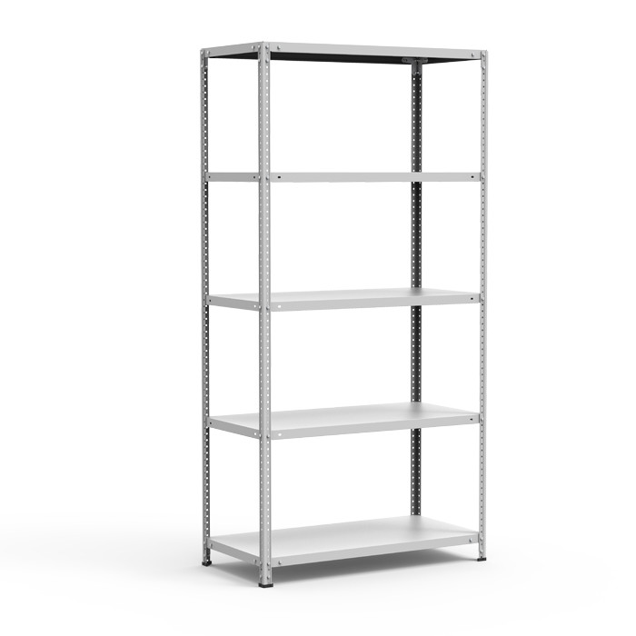 Стеллажи сборно-разборные серии СТФУ-П предназначены для хранения разнообразной продукции в офисах, торговых залах, бытовках, камерах хранения, гаражах, складских площадях, архивах. Грузоподъемность односекционного стеллажа СТФУ-П высотой 2.2м составляет 1300кг, а многосекционного стеллажа – до 1600 кг. При этом на верхнюю полку равномерно распределнная нагрузка (как в односекционном, так и многосекционном стеллажах) не должна превышать 60 кг. Нижняя полка стеллажа должна размещаться не выше 150 мм от пола. В основном стеллажи продаются поэлементно. Данная базовая модель - стеллаж СТФУ-П 1075-2.2 комплектуется 4 стойками h2200 мм, пятью полками 1000*700 мм, четырьмя подпятниками, 64 комплектами крепежа, 16 уголками жесткости. Стойки стеллажа изготовлены из профиля "равносторонний угол", шаг перфорации равен 25 мм (диаметр перфорации 7 мм). Полки усилены ребром жесткости. Стойки и полки окрашены полимерной (порошковой) краской RAL 7035 светло-серого цвета. Стеллаж поставляется в разобранном виде, упакованный в стрейч пленку и гофрокартон.