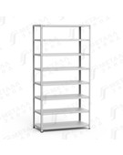 Стеллажи сборно-разборные серии СТФУ-П предназначены для хранения разнообразной продукции в офисах, торговых залах, бытовках, камерах хранения, гаражах, складских площадях, архивах. Грузоподъемность односекционного стеллажа СТФУ-П высотой 2м составляет 1600кг, а многосекционного стеллажа – до 1900 кг. При этом на верхнюю полку равномерно распределнная нагрузка (как в односекционном, так и многосекционном стеллажах) не должна превышать 60 кг. Нижняя полка стеллажа должна размещаться не выше 150 мм от пола. В основном стеллажи продаются поэлементно. Данная базовая модель - стеллаж СТФУ-П 1088-2.0 комплектуется 4 стойками h2000 мм, восемью полками 1000*800 мм, четырьмя подпятниками, 64 комплектами крепежа, 16 уголками жесткости. Стойки стеллажа изготовлены из профиля "равносторонний угол", шаг перфорации равен 25 мм (диаметр перфорации 7 мм). Полки усилены ребром жесткости. Стойки и полки окрашены полимерной (порошковой) краской RAL 7035 светло-серого цвета. Стеллаж поставляется в разобранном виде, упакованный в стрейч пленку и гофрокартон.