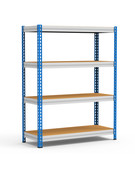 Металлические складские стеллажи серии МКФ предназначены для хранения различных грузов. Допустимая равномерно распределенная нагрузка на каждый ярус - не более 300 кг, нагрузка на всю секцию - не более 2100 кг. Стеллажи полочные, сборно-разборные. Особенности конструктивного исполнения стеллажа позволяют производить сборку без дополнительных крепежных элементов. Профиль балки МКФ позволяет использовать стеллаж в двух вариантах: одна сторона предназначена для настила, другая – для хранения автомобильных колес. В первом варианте каждая полка (ярус) состоит из продольных и поперечных) балок, на которых размещается усиленная фанера, во втором варианте – только продольные и поперечные балки. Балки стеллажа крепятся к стойкам при помощи двух замков с зацепами. Стеллажи с представленными размерами позволяют хранить колеса радиусом от 13” и выше. Стойки окрашены полимерной (порошковой) краской RAL 5015 синего цвета или RAL7035 светло-серого цвета, балки окрашены в RAL7035 светло-серого цвета. Шаг перфорации стойки - 50 мм Полками служит настил из фанеры Стеллаж поставляется в разобранном виде. Балки и стойки упакованы в стрейч пленку.
