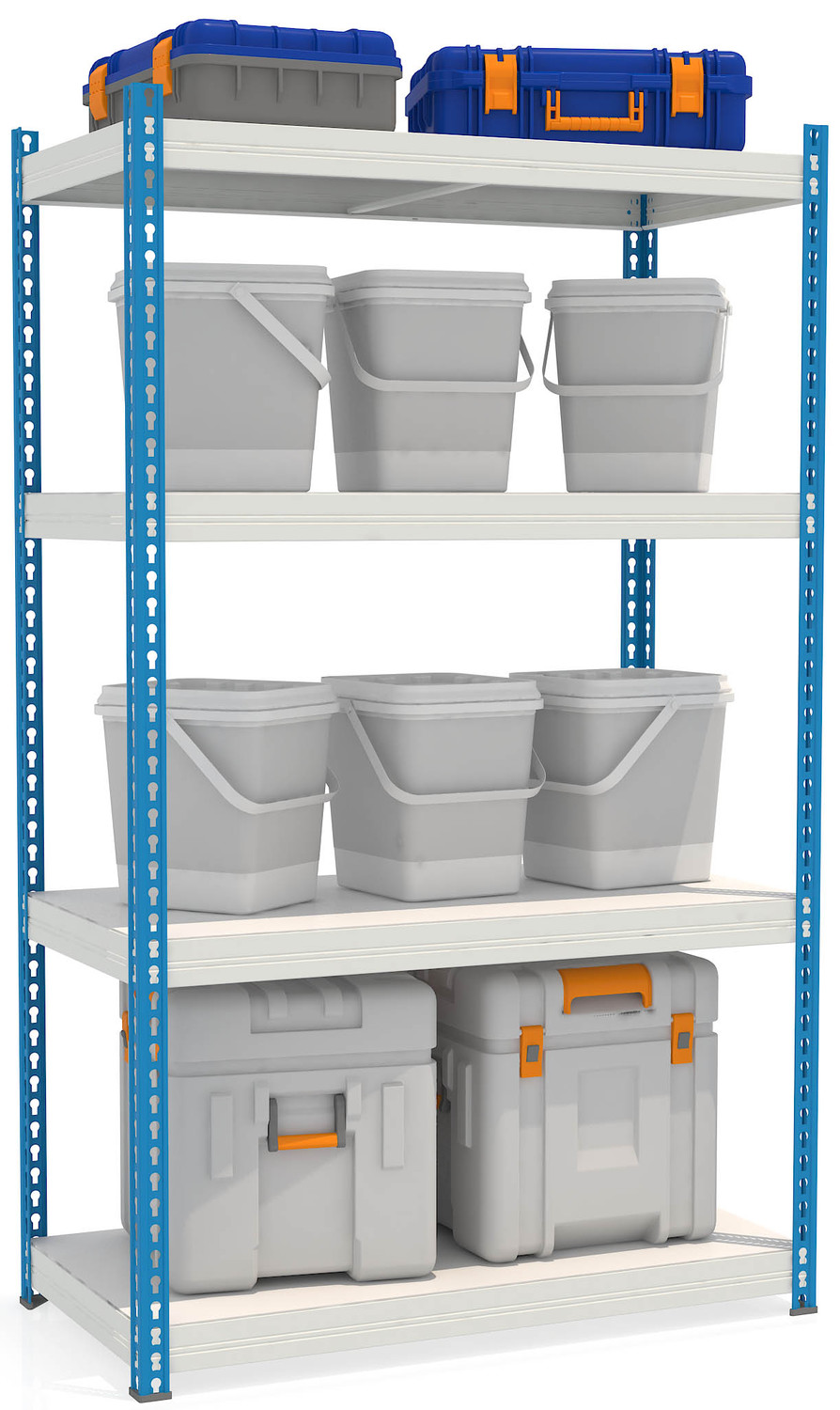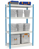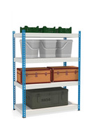 Металлические складские стеллажи серии МКФ предназначены для хранения различных грузов. Допустимая равномерно распределенная нагрузка на каждый ярус - не более 300 кг, нагрузка на всю секцию - не более 2100 кг. Стеллажи полочные, сборно-разборные. Особенности конструктивного исполнения стеллажа позволяют производить сборку без дополнительных крепежных элементов. Профиль балки МКФ позволяет использовать стеллаж в двух вариантах: одна сторона предназначена для настила, другая – для хранения автомобильных колес. В первом варианте каждая полка (ярус) состоит из продольных и поперечных) балок, на которых размещается усиленная фанера, во втором варианте – только продольные и поперечные балки. Балки стеллажа крепятся к стойкам при помощи двух замков с зацепами. Стеллажи с представленными размерами позволяют хранить колеса радиусом от 13” и выше. Стойки окрашены полимерной (порошковой) краской RAL 5015 синего цвета или RAL7035 светло-серого цвета, балки окрашены в RAL7035 светло-серого цвета. Шаг перфорации стойки - 50 мм Полками служит настил из фанеры Стеллаж поставляется в разобранном виде. Балки и стойки упакованы в стрейч пленку.