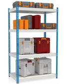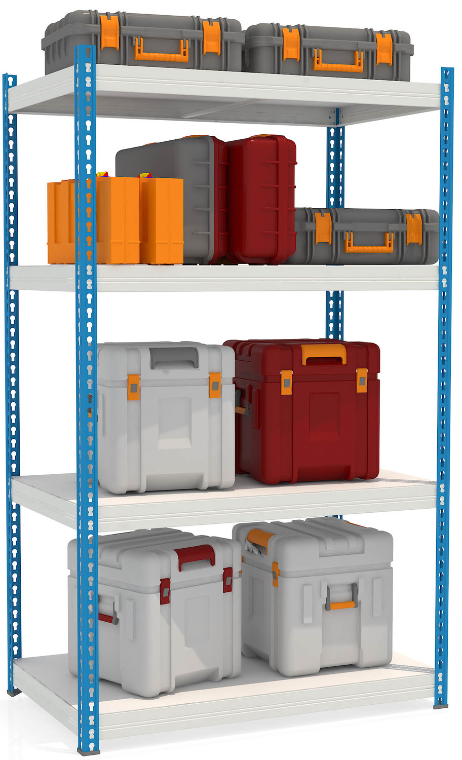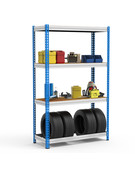 Металлические складские стеллажи серии МКФ предназначены для хранения различных грузов. Допустимая равномерно распределенная нагрузка на каждый ярус - не более 300 кг, нагрузка на всю секцию - не более 2100 кг. Стеллажи полочные, сборно-разборные. Особенности конструктивного исполнения стеллажа позволяют производить сборку без дополнительных крепежных элементов. Профиль балки МКФ позволяет использовать стеллаж в двух вариантах: одна сторона предназначена для настила, другая – для хранения автомобильных колес. В первом варианте каждая полка (ярус) состоит из продольных и поперечных) балок, на которых размещается усиленная фанера, во втором варианте – только продольные и поперечные балки. Балки стеллажа крепятся к стойкам при помощи двух замков с зацепами. Стеллажи с представленными размерами позволяют хранить колеса радиусом от 13” и выше. Стойки окрашены полимерной (порошковой) краской RAL 5015 синего цвета или RAL7035 светло-серого цвета, балки окрашены в RAL7035 светло-серого цвета. Шаг перфорации стойки - 50 мм Полками служит настил из фанеры Стеллаж поставляется в разобранном виде. Балки и стойки упакованы в стрейч пленку.