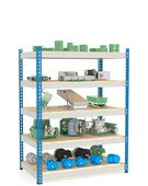 Металлические складские стеллажи серии МКФ предназначены для хранения различных грузов. Допустимая равномерно распределенная нагрузка на каждый ярус - не более 300 кг, нагрузка на всю секцию - не более 2100 кг. Стеллажи полочные, сборно-разборные. Особенности конструктивного исполнения стеллажа позволяют производить сборку без дополнительных крепежных элементов. Профиль балки МКФ позволяет использовать стеллаж в двух вариантах: одна сторона предназначена для настила, другая – для хранения автомобильных колес. В первом варианте каждая полка (ярус) состоит из продольных и поперечных) балок, на которых размещается усиленная фанера, во втором варианте – только продольные и поперечные балки. Балки стеллажа крепятся к стойкам при помощи двух замков с зацепами. Стеллажи с представленными размерами позволяют хранить колеса радиусом от 13” и выше. Стойки окрашены полимерной (порошковой) краской RAL 5015 синего цвета или RAL7035 светло-серого цвета, балки окрашены в RAL7035 светло-серого цвета. Шаг перфорации стойки - 50 мм Полками служит настил из фанеры Стеллаж поставляется в разобранном виде. Балки и стойки упакованы в стрейч пленку.
