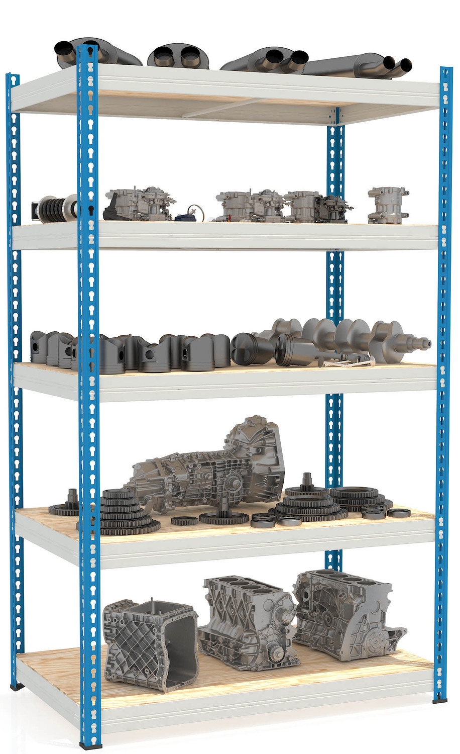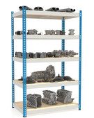 Металлические складские стеллажи серии МКФ предназначены для хранения различных грузов. Допустимая равномерно распределенная нагрузка на каждый ярус - не более 300 кг, нагрузка на всю секцию - не более 2100 кг. Стеллажи полочные, сборно-разборные. Особенности конструктивного исполнения стеллажа позволяют производить сборку без дополнительных крепежных элементов. Профиль балки МКФ позволяет использовать стеллаж в двух вариантах: одна сторона предназначена для настила, другая – для хранения автомобильных колес. В первом варианте каждая полка (ярус) состоит из продольных и поперечных) балок, на которых размещается усиленная фанера, во втором варианте – только продольные и поперечные балки. Балки стеллажа крепятся к стойкам при помощи двух замков с зацепами. Стеллажи с представленными размерами позволяют хранить колеса радиусом от 13” и выше. Стойки окрашены полимерной (порошковой) краской RAL 5015 синего цвета или RAL7035 светло-серого цвета, балки окрашены в RAL7035 светло-серого цвета. Шаг перфорации стойки - 50 мм Полками служит настил из фанеры Стеллаж поставляется в разобранном виде. Балки и стойки упакованы в стрейч пленку.
