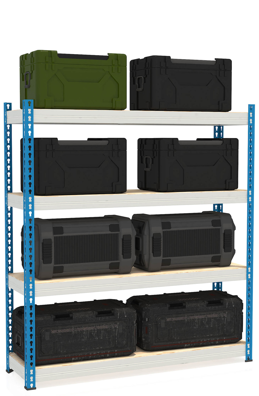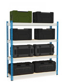 Металлические складские стеллажи серии МКФ предназначены для хранения различных грузов. Допустимая равномерно распределенная нагрузка на каждый ярус - не более 300 кг, нагрузка на всю секцию - не более 2100 кг. Стеллажи полочные, сборно-разборные. Особенности конструктивного исполнения стеллажа позволяют производить сборку без дополнительных крепежных элементов. Профиль балки МКФ позволяет использовать стеллаж в двух вариантах: одна сторона предназначена для настила, другая – для хранения автомобильных колес. В первом варианте каждая полка (ярус) состоит из продольных и поперечных) балок, на которых размещается усиленная фанера, во втором варианте – только продольные и поперечные балки. Балки стеллажа крепятся к стойкам при помощи двух замков с зацепами. Стеллажи с представленными размерами позволяют хранить колеса радиусом от 13” и выше. Стойки окрашены полимерной (порошковой) краской RAL 5015 синего цвета или RAL7035 светло-серого цвета, балки окрашены в RAL7035 светло-серого цвета. Шаг перфорации стойки - 50 мм Полками служит настил из фанеры Стеллаж поставляется в разобранном виде. Балки и стойки упакованы в стрейч пленку.