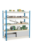 Металлические складские стеллажи серии МКФ предназначены для хранения различных грузов. Допустимая равномерно распределенная нагрузка на каждый ярус - не более 300 кг, нагрузка на всю секцию - не более 2100 кг. Стеллажи полочные, сборно-разборные. Особенности конструктивного исполнения стеллажа позволяют производить сборку без дополнительных крепежных элементов. Профиль балки МКФ позволяет использовать стеллаж в двух вариантах: одна сторона предназначена для настила, другая – для хранения автомобильных колес. В первом варианте каждая полка (ярус) состоит из продольных и поперечных) балок, на которых размещается усиленная фанера, во втором варианте – только продольные и поперечные балки. Балки стеллажа крепятся к стойкам при помощи двух замков с зацепами. Стеллажи с представленными размерами позволяют хранить колеса радиусом от 13” и выше. Стойки окрашены полимерной (порошковой) краской RAL 5015 синего цвета или RAL7035 светло-серого цвета, балки окрашены в RAL7035 светло-серого цвета. Шаг перфорации стойки - 50 мм Полками служит настил из фанеры Стеллаж поставляется в разобранном виде. Балки и стойки упакованы в стрейч пленку.