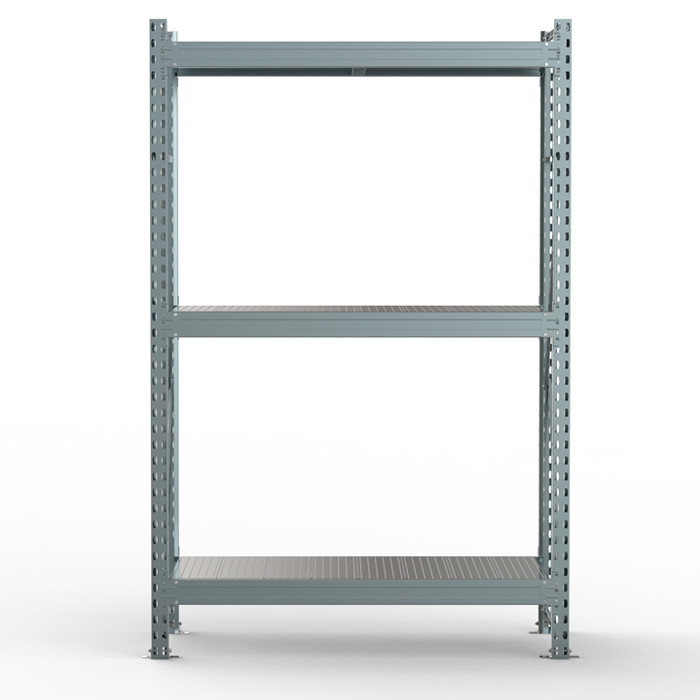 • Среднегрузовой стеллаж SGR состоит из рам (сборная конструкция из двух оцинкованных стоек, соединенных горизонтальными и наклонными стяжками), продольных балок с креплением к стойкам на зацепах и оцинкованных металлических настилов, размещенных на продольных балках. • Технология крепления балки к стойкам - безболтовая, на зацепах. Такой подход значительно уменьшает время сборки и установки стеллажа. Конструкция позволяет менять положение полок без демонтажа всей секции. • Ярус хранения включает в себя две балки и настил, составленный из оцинкованных полок. • К раме стеллажа можно присоединить дополнительные секции на зацеп. Нагрузочные характеристики при добавлении доп.секций сохраняются • Допустимое минимальное количество ярусов хранения на каждую секцию - не менее трёх штук. • Для предотвращения случайного съёма балок яруса с рам предусмотрен фиксатор, устанавливаемый в конце сборки в прямоугольное отверстие каждого зацепа. • Каждая стойка снабжена металлическим подпятником на болтовом креплении. • Стеллаж комплектуется необходимой фурнитурой для сборки. • Стойки окрашены полимерной (порошковой) краской RAL 5015 синего цвета или RAL7035 светло-серого цвета, балки окрашены в RAL7035 светло-серого цвета.