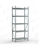 • Среднегрузовой стеллаж SGR состоит из рам (сборная конструкция из двух оцинкованных стоек, соединенных горизонтальными и наклонными стяжками), продольных балок с креплением к стойкам на зацепах и оцинкованных металлических настилов, размещенных на продольных балках. • Технология крепления балки к стойкам - безболтовая, на зацепах. Такой подход значительно уменьшает время сборки и установки стеллажа. Конструкция позволяет менять положение полок без демонтажа всей секции. • Ярус хранения включает в себя две балки и настил, составленный из оцинкованных полок. • К раме стеллажа можно присоединить дополнительные секции на зацеп. Нагрузочные характеристики при добавлении доп.секций сохраняются • Допустимое минимальное количество ярусов хранения на каждую секцию - не менее трёх штук. • Для предотвращения случайного съёма балок яруса с рам предусмотрен фиксатор, устанавливаемый в конце сборки в прямоугольное отверстие каждого зацепа. • Каждая стойка снабжена металлическим подпятником на болтовом креплении. • Стеллаж комплектуется необходимой фурнитурой для сборки. • Стойки окрашены полимерной (порошковой) краской RAL 5015 синего цвета или RAL7035 светло-серого цвета, балки окрашены в RAL7035 светло-серого цвета.