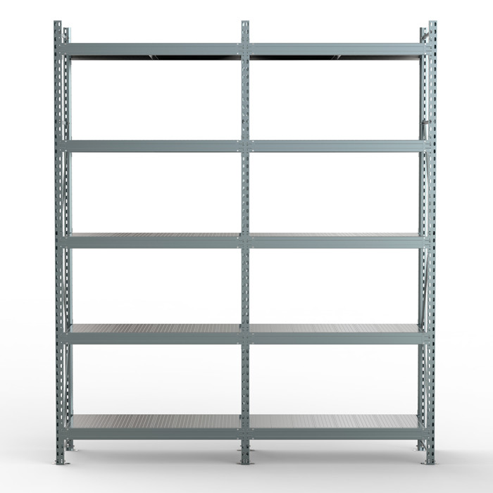 • Среднегрузовой стеллаж SGR состоит из рам (сборная конструкция из двух оцинкованных стоек, соединенных горизонтальными и наклонными стяжками), продольных балок с креплением к стойкам на зацепах и оцинкованных металлических настилов, размещенных на продольных балках. • Технология крепления балки к стойкам - безболтовая, на зацепах. Такой подход значительно уменьшает время сборки и установки стеллажа. Конструкция позволяет менять положение полок без демонтажа всей секции. • Ярус хранения включает в себя две балки и настил, составленный из оцинкованных полок. • К раме стеллажа можно присоединить дополнительные секции на зацеп. Нагрузочные характеристики при добавлении доп.секций сохраняются • Допустимое минимальное количество ярусов хранения на каждую секцию - не менее трёх штук. • Для предотвращения случайного съёма балок яруса с рам предусмотрен фиксатор, устанавливаемый в конце сборки в прямоугольное отверстие каждого зацепа. • Каждая стойка снабжена металлическим подпятником на болтовом креплении. • Стеллаж комплектуется необходимой фурнитурой для сборки. • Стойки окрашены полимерной (порошковой) краской RAL 5015 синего цвета или RAL7035 светло-серого цвета, балки окрашены в RAL7035 светло-серого цвета.