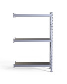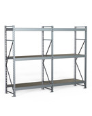 • Дополнительная секция состоит из комплекта оцинкованных рам, балок и полок, метод крепления к основной секции - с помощью зацепов. • Дополнительная секция присоединяется к раме основного стеллажа. Нагрузочные характеристики при этом сохраняются. • Технология крепления балки к стойкам - безболтовая, на зацепах. Такой подход значительно уменьшает время сборки и установки стеллажа. Конструкция позволяет менять положение полок без демонтажа всей секции. • Ярус хранения включает в себя две продольные балки и оцинкованный настил. • Допустимое минимальное количество ярусов хранения на каждую секцию - не менее трёх штук. • Для предотвращения случайного съёма балок яруса с рам предусмотрен фиксатор, устанавливаемый в конце сборки в прямоугольное отверстие каждого зацепа. • Стеллаж комплектуется необходимой фурнитурой для сборки. • Стойки окрашены полимерной (порошковой) краской RAL 5015 синего цвета или RAL7035 светло-серого цвета, балки окрашены в RAL7035 светло-серого цвета.