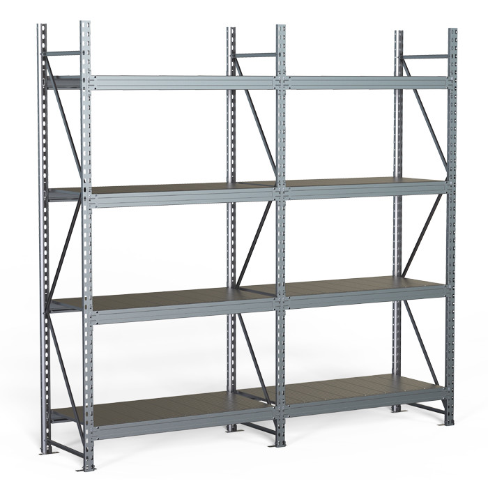 • Дополнительная секция состоит из комплекта оцинкованных рам, балок и полок, метод крепления к основной секции - с помощью зацепов. • Дополнительная секция присоединяется к раме основного стеллажа. Нагрузочные характеристики при этом сохраняются. • Технология крепления балки к стойкам - безболтовая, на зацепах. Такой подход значительно уменьшает время сборки и установки стеллажа. Конструкция позволяет менять положение полок без демонтажа всей секции. • Ярус хранения включает в себя две продольные балки и оцинкованный настил. • Допустимое минимальное количество ярусов хранения на каждую секцию - не менее трёх штук. • Для предотвращения случайного съёма балок яруса с рам предусмотрен фиксатор, устанавливаемый в конце сборки в прямоугольное отверстие каждого зацепа. • Стеллаж комплектуется необходимой фурнитурой для сборки. • Стойки окрашены полимерной (порошковой) краской RAL 5015 синего цвета или RAL7035 светло-серого цвета, балки окрашены в RAL7035 светло-серого цвета.