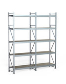 • Дополнительная секция состоит из комплекта оцинкованных рам, балок и полок, метод крепления к основной секции - с помощью зацепов. • Дополнительная секция присоединяется к раме основного стеллажа. Нагрузочные характеристики при этом сохраняются. • Технология крепления балки к стойкам - безболтовая, на зацепах. Такой подход значительно уменьшает время сборки и установки стеллажа. Конструкция позволяет менять положение полок без демонтажа всей секции. • Ярус хранения включает в себя две продольные балки и оцинкованный настил. • Допустимое минимальное количество ярусов хранения на каждую секцию - не менее трёх штук. • Для предотвращения случайного съёма балок яруса с рам предусмотрен фиксатор, устанавливаемый в конце сборки в прямоугольное отверстие каждого зацепа. • Стеллаж комплектуется необходимой фурнитурой для сборки. • Стойки окрашены полимерной (порошковой) краской RAL 5015 синего цвета или RAL7035 светло-серого цвета, балки окрашены в RAL7035 светло-серого цвета.