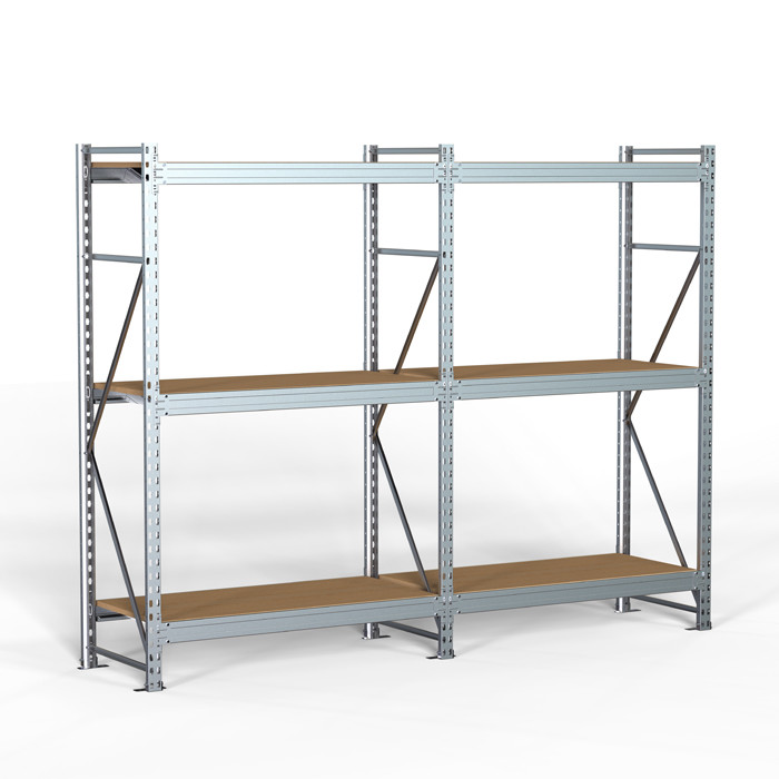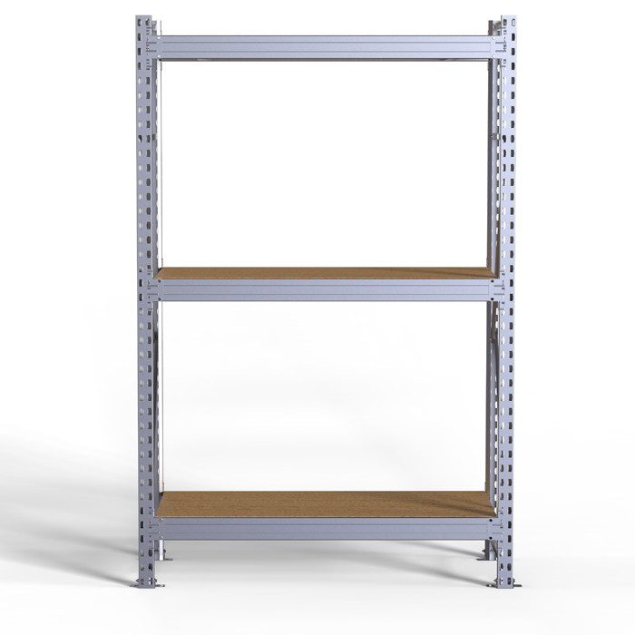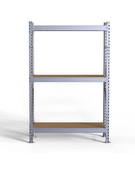 • Среднегрузовой стеллаж SGR-V-Zn-ДСП состоит из рам (сборная конструкция из двух оцинкованных стоек, соединенных горизонтальными и наклонными стяжками), продольных балок с креплением к стойкам на зацепах и настилов из ДСП, размещенных на продольных балках • Технология крепления балки к стойкам - безболтовая, на зацепах. Такой подход значительно уменьшает время сборки и установки стеллажа. Конструкция позволяет менять положение полок без демонтажа всей секции. • Ярус хранения включает в себя две продольные балки, соединенные между собой поперечными балками и настил из ДСП. • К раме стеллажа можно присоединить дополнительные секции на зацеп. Нагрузочные характеристики при добавлении доп.секций сохраняются • Допустимое минимальное количество ярусов хранения на каждую секцию - не менее трёх штук. • Для предотвращения случайного съёма балок яруса с рам предусмотрен фиксатор, устанавливаемый в конце сборки в прямоугольное отверстие каждого зацепа. • Каждая стойка снабжена металлическим подпятником на болтовом креплении. • Стеллаж комплектуется необходимой фурнитурой для сборки. • Стойки окрашены полимерной (порошковой) краской RAL 5015 синего цвета или RAL7035 светло-серого цвета, балки окрашены в RAL7035 светло-серого цвета.