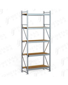 • Среднегрузовой стеллаж SGR-V-Zn-ДСП состоит из рам (сборная конструкция из двух оцинкованных стоек, соединенных горизонтальными и наклонными стяжками), продольных балок с креплением к стойкам на зацепах и настилов из ДСП, размещенных на продольных балках • Технология крепления балки к стойкам - безболтовая, на зацепах. Такой подход значительно уменьшает время сборки и установки стеллажа. Конструкция позволяет менять положение полок без демонтажа всей секции. • Ярус хранения включает в себя две продольные балки, соединенные между собой поперечными балками и настил из ДСП. • К раме стеллажа можно присоединить дополнительные секции на зацеп. Нагрузочные характеристики при добавлении доп.секций сохраняются • Допустимое минимальное количество ярусов хранения на каждую секцию - не менее трёх штук. • Для предотвращения случайного съёма балок яруса с рам предусмотрен фиксатор, устанавливаемый в конце сборки в прямоугольное отверстие каждого зацепа. • Каждая стойка снабжена металлическим подпятником на болтовом креплении. • Стеллаж комплектуется необходимой фурнитурой для сборки. • Стойки окрашены полимерной (порошковой) краской RAL 5015 синего цвета или RAL7035 светло-серого цвета, балки окрашены в RAL7035 светло-серого цвета.
