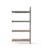 • Дополнительная секция состоит из комплекта оцинкованных рам, балок и полок. • Дополнительная секция присоединяется к раме основного стеллажа. Нагрузочные характеристики при этом сохраняются. • Технология крепления балки к стойкам - безболтовая, на зацепах. Такой подход значительно уменьшает время сборки и установки стеллажа. Конструкция позволяет менять положение полок без демонтажа всей секции. • Ярус хранения включает в себя две продольные балки, соединенные между собой поперечной балкой и настил из ДСП. • Допустимое минимальное количество ярусов хранения на каждую секцию - не менее трёх штук. • Для предотвращения случайного съёма балок яруса с рам предусмотрен фиксатор, устанавливаемый в конце сборки в прямоугольное отверстие каждого зацепа. • Стеллаж комплектуется необходимой фурнитурой для сборки. • Стойки окрашены полимерной (порошковой) краской RAL 5015 синего цвета или RAL7035 светло-серого цвета, балки окрашены в RAL7035 светло-серого цвета.