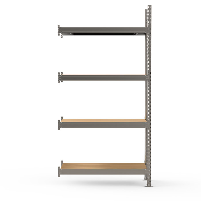 • Дополнительная секция состоит из комплекта оцинкованных рам, балок и полок. • Дополнительная секция присоединяется к раме основного стеллажа. Нагрузочные характеристики при этом сохраняются. • Технология крепления балки к стойкам - безболтовая, на зацепах. Такой подход значительно уменьшает время сборки и установки стеллажа. Конструкция позволяет менять положение полок без демонтажа всей секции. • Ярус хранения включает в себя две продольные балки, соединенные между собой поперечной балкой и настил из ДСП. • Допустимое минимальное количество ярусов хранения на каждую секцию - не менее трёх штук. • Для предотвращения случайного съёма балок яруса с рам предусмотрен фиксатор, устанавливаемый в конце сборки в прямоугольное отверстие каждого зацепа. • Стеллаж комплектуется необходимой фурнитурой для сборки. • Стойки окрашены полимерной (порошковой) краской RAL 5015 синего цвета или RAL7035 светло-серого цвета, балки окрашены в RAL7035 светло-серого цвета.