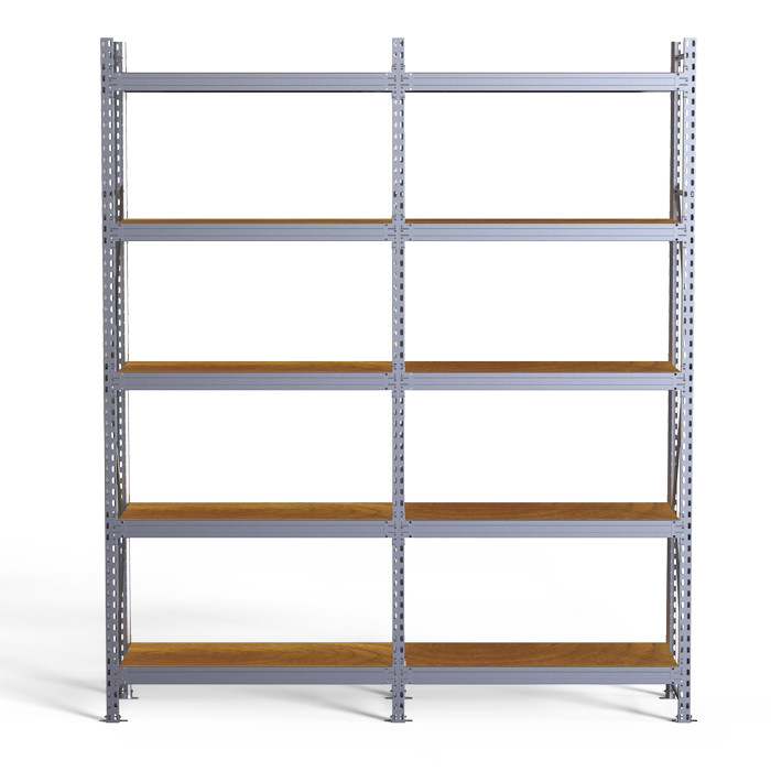 • Дополнительная секция состоит из комплекта оцинкованных рам, балок и полок. • Дополнительная секция присоединяется к раме основного стеллажа. Нагрузочные характеристики при этом сохраняются. • Технология крепления балки к стойкам - безболтовая, на зацепах. Такой подход значительно уменьшает время сборки и установки стеллажа. Конструкция позволяет менять положение полок без демонтажа всей секции. • Ярус хранения включает в себя две продольные балки, соединенные между собой поперечной балкой и настил из ДСП. • Допустимое минимальное количество ярусов хранения на каждую секцию - не менее трёх штук. • Для предотвращения случайного съёма балок яруса с рам предусмотрен фиксатор, устанавливаемый в конце сборки в прямоугольное отверстие каждого зацепа. • Стеллаж комплектуется необходимой фурнитурой для сборки. • Стойки окрашены полимерной (порошковой) краской RAL 5015 синего цвета или RAL7035 светло-серого цвета, балки окрашены в RAL7035 светло-серого цвета.