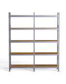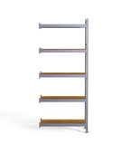 • Дополнительная секция состоит из комплекта оцинкованных рам, балок и полок. • Дополнительная секция присоединяется к раме основного стеллажа. Нагрузочные характеристики при этом сохраняются. • Технология крепления балки к стойкам - безболтовая, на зацепах. Такой подход значительно уменьшает время сборки и установки стеллажа. Конструкция позволяет менять положение полок без демонтажа всей секции. • Ярус хранения включает в себя две продольные балки, соединенные между собой поперечной балкой и настил из ДСП. • Допустимое минимальное количество ярусов хранения на каждую секцию - не менее трёх штук. • Для предотвращения случайного съёма балок яруса с рам предусмотрен фиксатор, устанавливаемый в конце сборки в прямоугольное отверстие каждого зацепа. • Стеллаж комплектуется необходимой фурнитурой для сборки. • Стойки окрашены полимерной (порошковой) краской RAL 5015 синего цвета или RAL7035 светло-серого цвета, балки окрашены в RAL7035 светло-серого цвета.