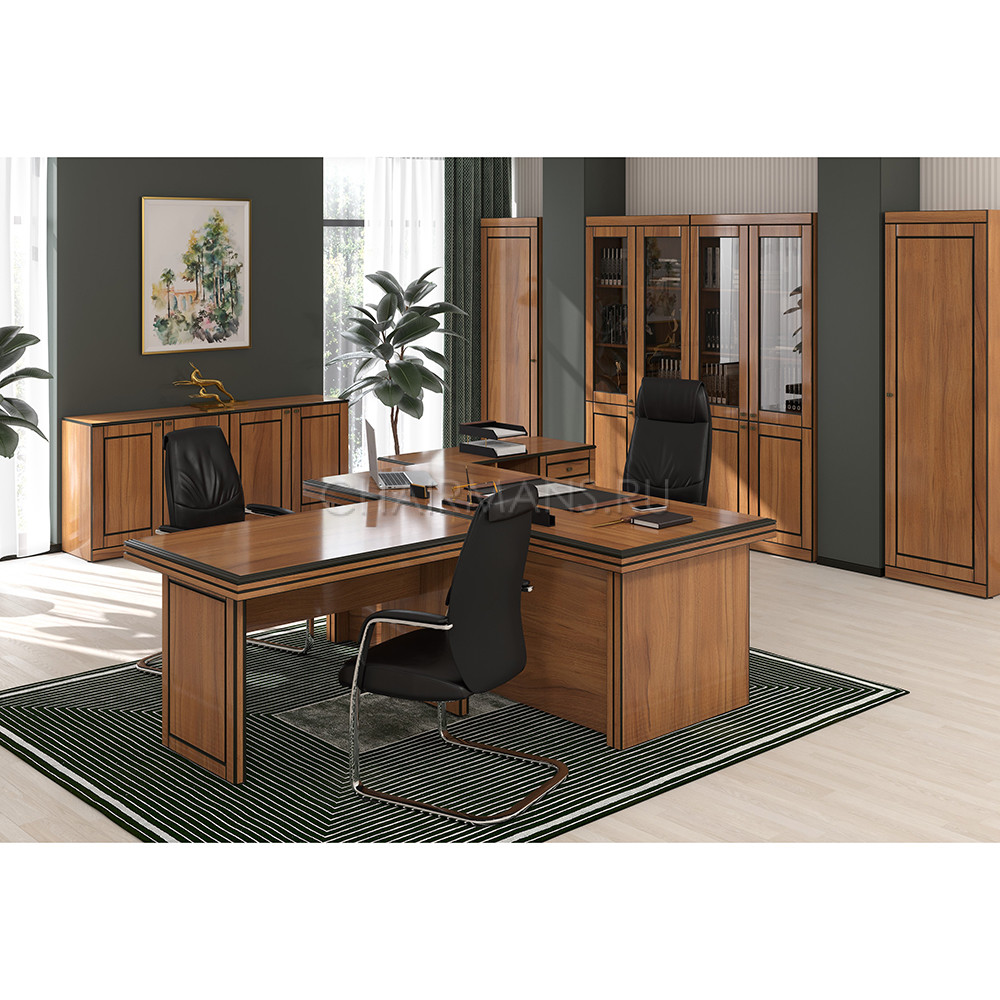 Топ тумбы, фасады и нижний цоколь из МДФ толщиной 16 мм, декорированы методом глубокого фрезерования, финишная отделка лаком. Каркас из ЛДСП толщиной 16 мм, видимые торцы облицованы кромкой ПВХ 0,4 мм. Каркас из 2-х секций, в каждой секции полка съемная. Правая секция под холодильник без задней стенки. Внутренние размеры ниши под холодильник: 446х512х810. Фасад комплектуется петлями с доводчиками. Ручки-кнопки, цвет - состаренная бронза.