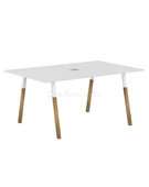 Столешница прямоугольная из ЛДСП толщиной 18мм c кромкой ABS толщиной 2мм, комплектуется квадратной заглушкой кабель-канала в центре, 2-мя траверсами и комбинированными опорами А-образной формы, верхняя часть из трубы 40х40мм и нижняя часть из массива бука; отделка – масло-воск. Опоры с регулировкой внизу.