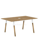 Столешница прямоугольная из ЛДСП толщиной 18мм c кромкой ABS толщиной 2мм, комплектуется квадратной заглушкой кабель-канала в центре, 2-мя траверсами и комбинированными опорами А-образной формы, верхняя часть из трубы 40х40мм и нижняя часть из массива бука; отделка – масло-воск. Опоры с регулировкой внизу.