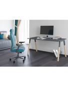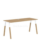 Столешница прямолинейная из ЛДСП толщиной 18мм c кромкой ABS толщиной 2мм, комплектуется квадратной заглушкой кабель-канала по центру, 2-мя траверсами и комбинированными опорами А-образной формы, верхняя часть из профиля трубы 40х40мм и нижняя часть из массива бука; отделка – масло-воск. Опоры имеют регулировку внизу.