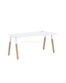 Столешница эргономичная из ЛДСП толщиной 18мм c кромкой ABS толщиной 2мм, комплектуется квадратной заглушкой кабель-канала слева или справа, 2-мя траверсами и комбинированными опорами А-образной формы, верхняя часть из профиля трубы 40х40мм и нижняя часть из массива бука; отделка – масло-воск. Опоры имеют регулировку внизу.