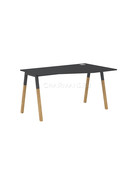Столешница эргономичная из ЛДСП толщиной 18мм c кромкой ABS толщиной 2мм, комплектуется квадратной заглушкой кабель-канала слева или справа, 2-мя траверсами и комбинированными опорами А-образной формы, верхняя часть из профиля трубы 40х40мм и нижняя часть из массива бука; отделка – масло-воск. Опоры имеют регулировку внизу.