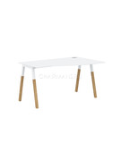 Столешница эргономичная из ЛДСП толщиной 18мм c кромкой ABS толщиной 2мм, комплектуется квадратной заглушкой кабель-канала слева или справа, 2-мя траверсами и комбинированными опорами А-образной формы, верхняя часть из профиля трубы 40х40мм и нижняя часть из массива бука; отделка – масло-воск. Опоры имеют регулировку внизу.