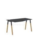 Столешница эргономичная из ЛДСП толщиной 18мм c кромкой ABS толщиной 2мм, комплектуется квадратной заглушкой кабель-канала слева или справа, 2-мя траверсами и комбинированными опорами А-образной формы, верхняя часть из профиля трубы 40х40мм и нижняя часть из массива бука; отделка – масло-воск. Опоры имеют регулировку внизу.