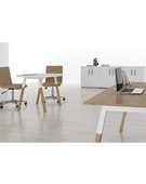 Столешница круглая из ЛДСП толщиной 18мм c кромкой ABS толщиной 2мм, комплектуется квадратной заглушкой кабель-канала в центре, 2-мя траверсами и комбинированными опорами А-образной формы, верхняя часть из трубы 40х40мм и нижняя часть материал – массив бука; отделка – масло-воск. Опоры с регулировкой внизу.