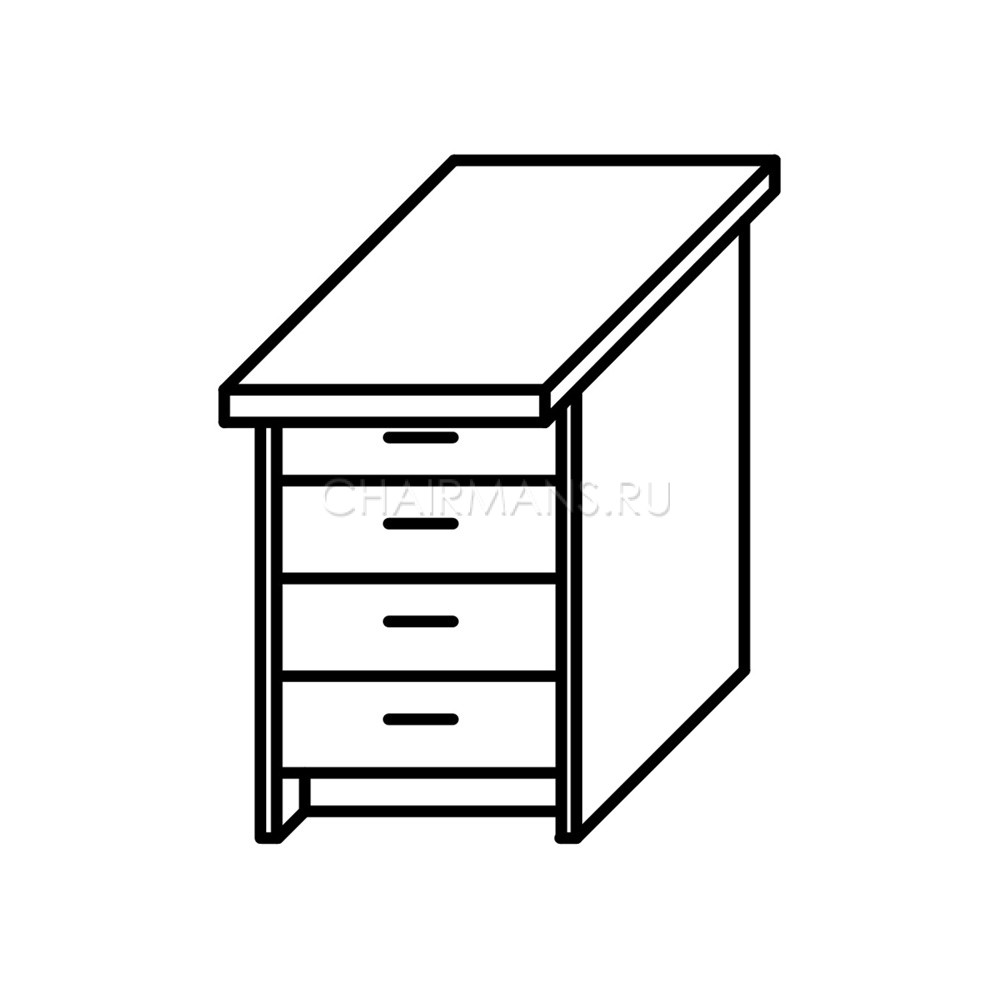 Верхний и нижний щит ЛДСП 22 мм., кромка ПВХ 2 мм. Фасад из ЛДСП 18 мм., кромка ПВХ 0,4 мм. Ручка скоба, металлическая, цвет серебро.